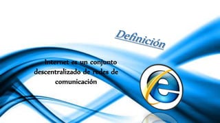 Internet es un conjunto descentralizado de redes de comunicación que se remonta a la década de 1960 cuando se desarrolló originalmente dentro de la Agencia de Proyectos de Investigación Avanzada de Defensa de EE. UU. (DARPA). La idea original era crear una red de ordenadores diseñada para permitir la comunicación generalizada. Internet ofrece servicios como el comercio electrónico y las redes sociales, pero también plantea desafíos como la posible exposición a contenidos inadecuados y la dependencia del acceso a la red.