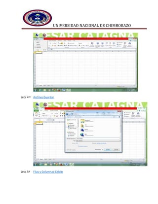 El documento presenta un plan de estudios de 37 lecciones sobre el manejo de Excel para un curso de primer semestre de Informática TICS. Las lecciones cubren temas como la interfaz de Excel, guardar archivos, formatos de celdas, tablas, sumas, funciones, gráficos y organigramas.