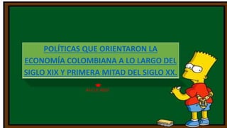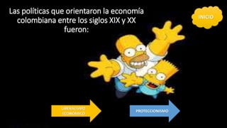 El documento analiza las políticas económicas que orientaron a Colombia durante el siglo XIX y la primera mitad del siglo XX, destacando el proteccionismo y el liberalismo económico. Se describe cómo el proteccionismo fue implementado para proteger la industria nacional, mientras que el liberalismo promovió la libre competencia y el comercio exterior. Además, se mencionan las limitaciones y consecuencias de estas políticas en el contexto del desarrollo económico colombiano.