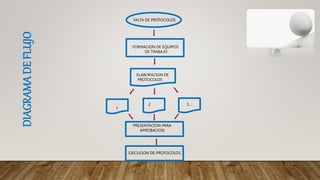 Este documento presenta una lista de 10 responsables de mejora continua de la calidad en un hospital y herramientas como protocolos y equipos de trabajo. Se realizó una matriz de priorización de problemas que identificó la falta de protocolos y el tiempo de espera prolongado para la atención como los mayores problemas. También incluye un diagrama Ishikawa para analizar las causas de la falta de protocolos y un diagrama de Gantt para el plan de implementación de protocolos a lo largo de 8 semanas.