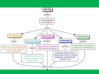 El documento describe las tecnologías de la información y la comunicación (TIC), incluyendo que son un conjunto de servicios, redes, software y dispositivos que mejoran la calidad de vida de las personas al integrarlos en un sistema de información interconectado. Explica algunas de las ventajas de las TIC como el interés, la motivación y el desarrollo de habilidades de búsqueda, así como algunas desventajas como las distracciones y la pérdida de tiempo.