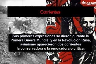 El documento describe la historia y características de los carteles políticos durante la Primera Guerra Mundial y la Revolución Rusa. Los carteles políticos surgieron de la creatividad de las vanguardias artísticas y tenían como objetivo comunicar mensajes a las masas. Durante la Primera Guerra Mundial, los carteles buscaban reclutar soldados y justificar la guerra, mientras que durante la Revolución Rusa promovían ideas revolucionarias y el nuevo orden social.