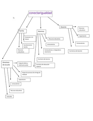 El documento proporciona instrucciones para explorar varios sitios y recursos educativos en línea. Instruye al usuario para investigar sitios como conectarigualdad.gob.ar y educ.ar, descargar aplicaciones como Excel y Cheese, crear páginas web, y compartir trabajos a través de plataformas como SlideShare y Scribd.