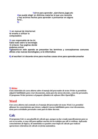 1) El documento presenta una lista de 17 tareas relacionadas con el uso de la tecnología y recursos educativos digitales que deben completarse para el 29 de abril. 2) Las tareas incluyen descargar aplicaciones, investigar sitios web educativos, crear sitios web personales, y probar enlaces a sitios de edición de imágenes. 3) También se pide investigar sobre los recursos educativos digitales disponibles para estudiantes y docentes.