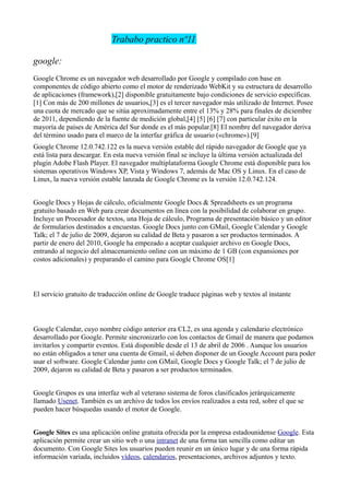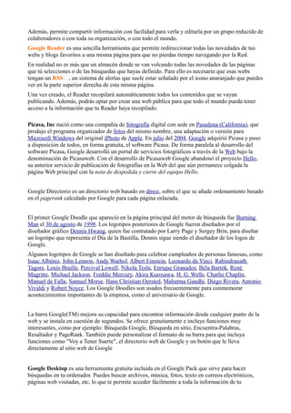 Google ofrece una amplia gama de productos y servicios gratuitos. Algunos de los más populares son el navegador Google Chrome, las herramientas de productividad en línea Google Docs y Hojas de cálculo, el servicio de correo electrónico Gmail, el calendario Google Calendar, Google Maps y Google Earth para visualizar mapas e imágenes satelitales, y Google Academico para buscar artículos académicos. Google también ha desarrollado otras herramientas como Google Groups, Google Sites, Google Reader, Google Desktop y Google Pack.