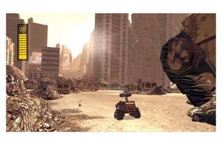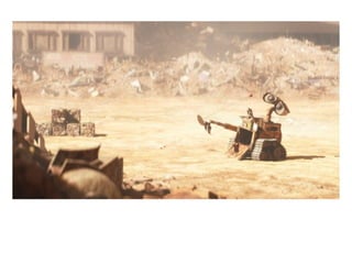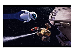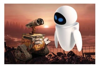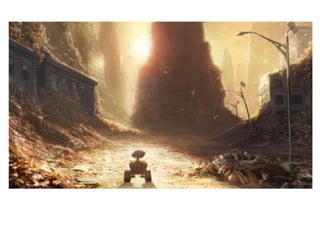 La película Wall-E describe el problema ambiental de excesivos residuos humanos en la Tierra, lo que hace indispensable que los humanos habiten temporalmente en el espacio. El robot Wall-E limpia la basura en la Tierra y se enamora de la robot Eva, cuya misión es investigar si la Tierra es nuevamente habitable. Juntos descubren una planta que demuestra que la Tierra puede volver a ser el hogar de la humanidad.
