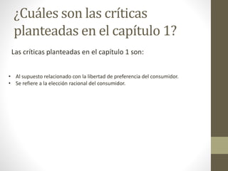 El documento discute varios conceptos económicos clave como la teoría de la elección racional del consumidor, los sesgos conductuales, los oligopolios y monopolios. Explica cómo Marge abre una franquicia de pretzels y analiza el duopolio resultante con su competidor. También analiza la teoría de juegos aplicada al dilema del prisionero.