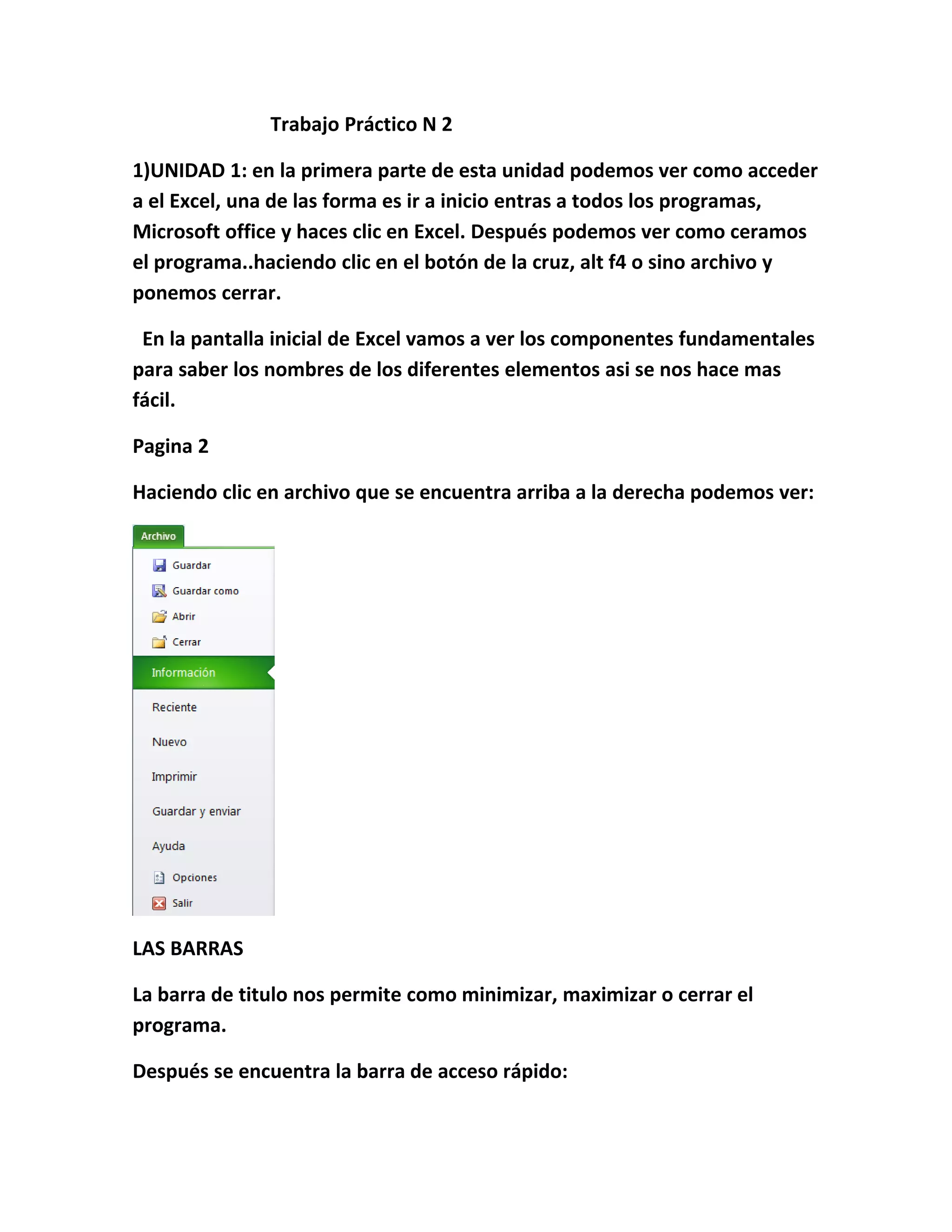 Este documento proporciona una introducción a Microsoft Excel, explicando los componentes básicos de la interfaz como las barras de título, menús y pestañas. También describe cómo navegar por hojas y celdas, introducir y modificar datos, y realizar funciones básicas como guardar, cerrar y abrir libros de trabajo. El documento contiene instrucciones paso a paso para aprender a utilizar las funciones fundamentales de Excel.