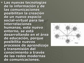 El documento describe los conceptos de educación virtual y e-learning. La educación virtual permite que alumnos y profesores no estén en el mismo lugar físico, sino que se comuniquen a través de medios tecnológicos. El e-learning usa tecnología de redes para diseminar información multimedia de manera interactiva entre aprendices en cualquier lugar. Moodle es un sistema de gestión de cursos en línea que ayuda a crear comunidades de aprendizaje virtuales mediante funciones como administración de usuarios, recursos y actividades.