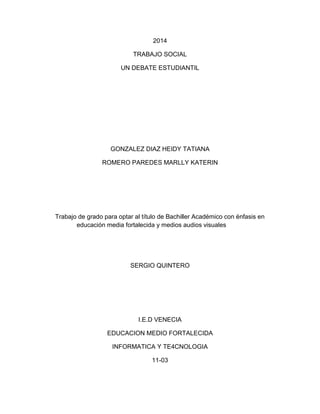 El documento aborda la problemática del consumo de drogas entre jóvenes, destacando su impacto social, psicológico y físico. Se propone un proyecto educativo en el IED Venecia para generar conciencia y prevención sobre los problemas sociales relacionados con la adicción. Los objetivos incluyen ayudar a jóvenes a enfrentar estas problemáticas a través de charlas y fomentar la reflexión sobre su futuro.