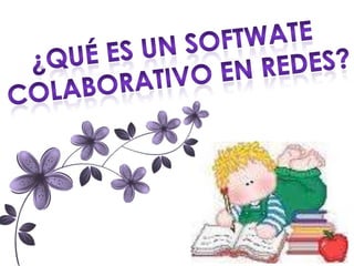 Este documento describe el software colaborativo, que permite a múltiples usuarios trabajar juntos en un proyecto a través de una red. Explica que el software colaborativo se divide en tres categorías: herramientas de colaboración-comunicación que permiten compartir información de forma asíncrona, herramientas de conferencia que facilitan la colaboración sincrónica, y herramientas de gestión colaborativa que ayudan a coordinar las actividades de un grupo.