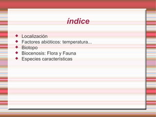 Este documento describe la estepa como un bioma frío y árido con escasas precipitaciones. La estepa se caracteriza por tener temperaturas extremas, suelos pobres en materia orgánica y una vegetación dominada por gramíneas. La fauna incluye especies cavadoras que construyen madrigueras para protegerse de las variaciones de temperatura y humedad. Algunas especies características de las estepas son el camello, el caballo y la oveja en Asia, el canguro en Australia y el guanaco y