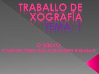 Este documento describe los rasgos físicos de la península ibérica. Explica que tiene un relieve muy compartimentado con serranías litorales y zonas hundidas en el interior. Las costas son muy accidentadas y los ríos son caudalosos con régimen pluvial. Se mencionan varias serranías, ríos, bahías, cabos y otras características geográficas.