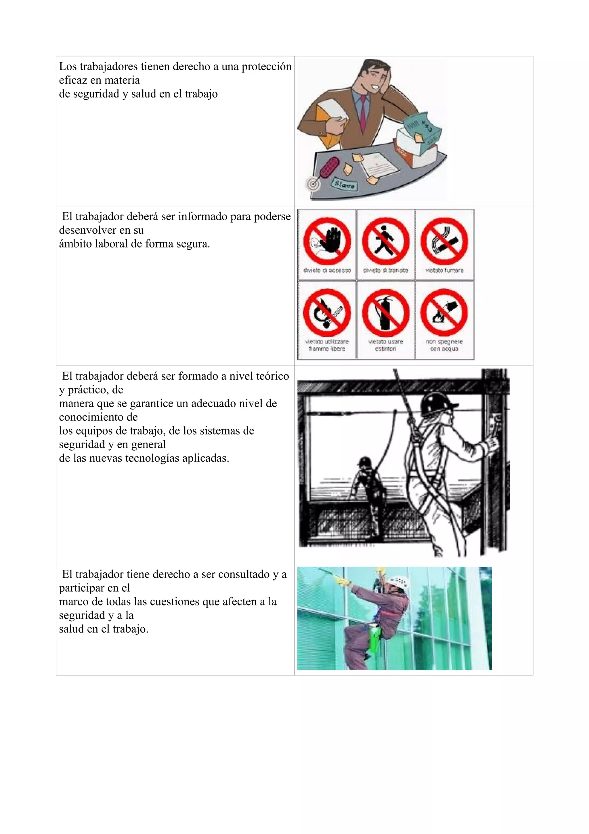 El documento destaca el derecho de los trabajadores a una protección eficaz en materia de seguridad y salud laboral. Específicamente, los trabajadores tienen derecho a ser informados y capacitados sobre los riesgos y equipos de trabajo, a participar en cuestiones que afectan su seguridad y salud, e interrumpir actividades ante riesgos graves e inminentes para su integridad física. También tienen derecho a recibir vigilancia médica de su salud laboral.