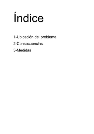 El documento describe una rotura de presa en Hungría en 2010 que liberó 1 millón de metros cúbicos de lodo alcalino tóxico en un área de 40 km, contaminando suelos, aguas y causando cuatro muertes. Las consecuencias incluyeron daños a edificios, cultivos y ecosistemas acuáticos. Las autoridades solicitaron ayuda a la UE para los costos de limpieza, pero fue denegada. Se emplearon voluntarios y yeso para neutralizar el lodo, aunque parte llegó al río Dan