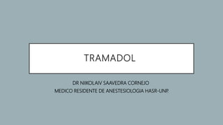 Tramadol es un potente analgésico central con afinidad por el receptor mu que actúa inhibiendo la reutilización de noradrenalina y serotonina. Se absorbe rápidamente por vía oral y su metabolismo hepático produce efectos secundarios mínimos. Se excreta principalmente por vía renal.