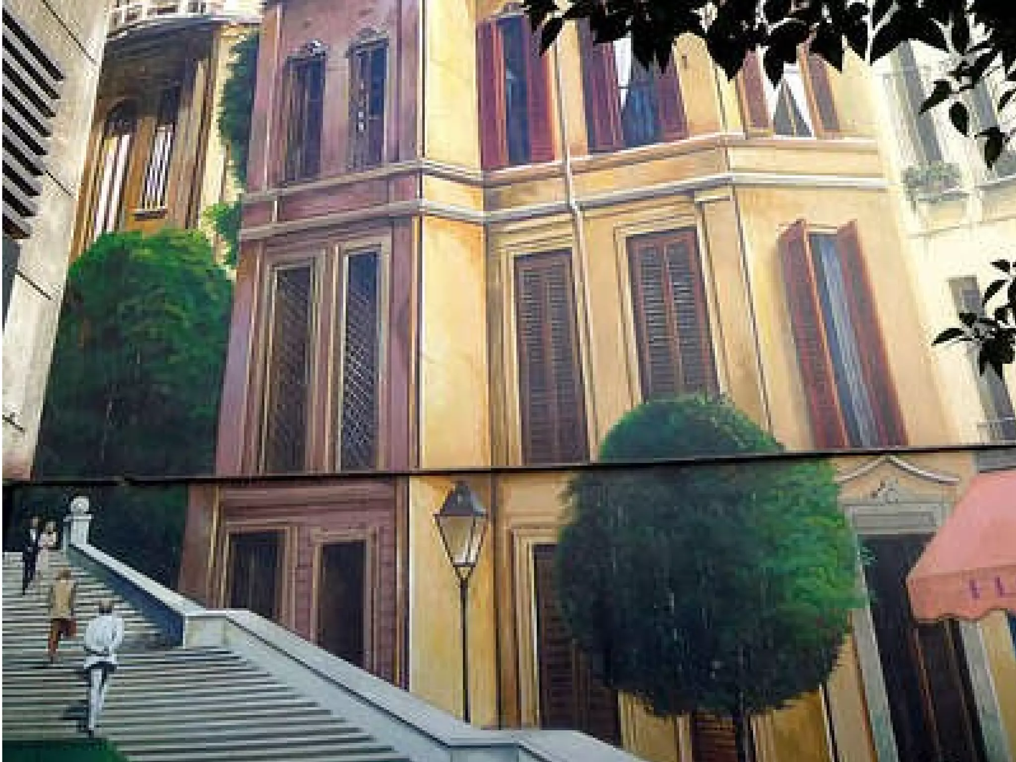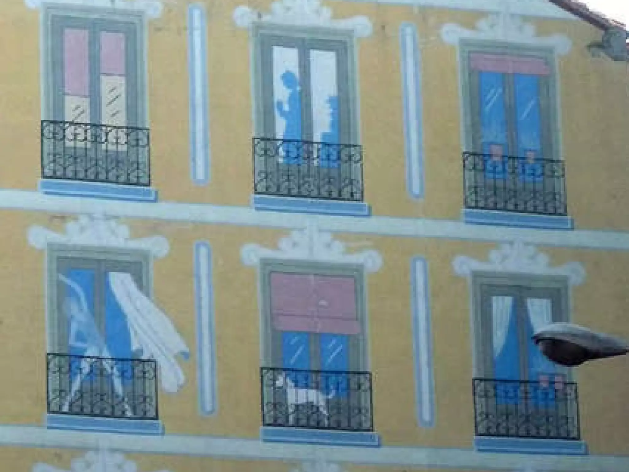 Las imágenes muestran trampantojos pintados en las calles de Madrid que crean la ilusión óptica de puertas, ventanas u otros elementos arquitectónicos aunque en realidad no existen. Los trampantojos fueron pintados por el artista madrileño Federico Moreno Torroba.