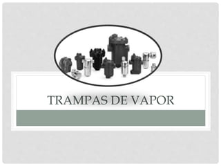Las trampas de vapor son válvulas que filtran el vapor condensado y gases no condensables como el aire sin dejar escapar el vapor. Se usan principalmente para drenar condensados, eliminar gases y evitar pérdidas de vapor. Existen tres tipos principales: mecánicas, que usan la diferencia de densidad; termostáticas, que usan la diferencia de temperatura; y termodinámicas, que aprovechan el cambio de estado del condensado.