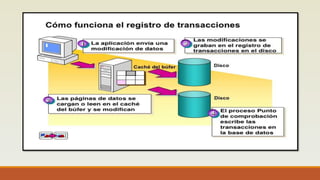 El documento define las transacciones y sus propiedades ACID. Una transacción es una unidad de trabajo que mantiene la consistencia de los datos al confirmar o revertir todas las modificaciones de forma atómica. Las transacciones garantizan la atomicidad, consistencia, aislamiento y durabilidad de los cambios en la base de datos.