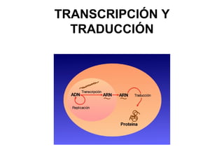 La transcripción convierte el ADN en ARN mensajero complementario en el núcleo. La traducción luego usa el ARN mensajero y los ribosomas en el citoplasma para producir proteínas a través de la adición secuencial de aminoácidos guiados por los codones del ARN mensajero. El proceso de codificación genética convierte la información en el ADN en proteínas a través de la transcripción y traducción.