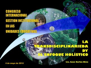 Este documento discute los conceptos de intradisciplinariedad, interdisciplinariedad y transdisciplinariedad. Explica que la intradisciplinariedad se refiere a las relaciones dentro de un campo de conocimiento, la interdisciplinariedad implica la integración de disciplinas al abordar un problema, y la transdisciplinariedad trasciende las disciplinas para comprender la realidad en su totalidad. También promueve una educación holística que ve al mundo como un sistema interrelacionado.