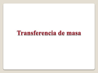 El documento trata sobre los procesos de transporte de masa. Explica las leyes de Fick, Fourier y Newton que rigen la difusión molecular, conducción de calor y viscosidad respectivamente. También describe ejemplos de operaciones de transporte como la difusión de gases a través de una placa y la transferencia de calor entre láminas. El documento provee una introducción completa a los fundamentos de la transferencia de masa.