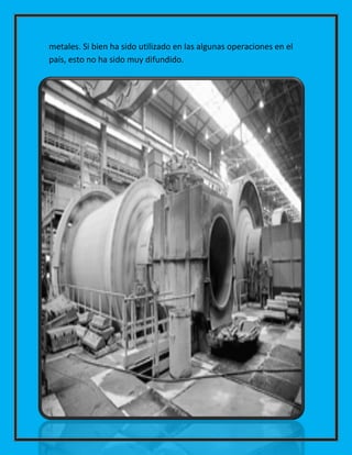 Existen varios procesos para la transformación de metales como la gravedad, flotación, propiedades magnéticas y electrostáticas, lixiviación y métodos microbiológicos. Estos procesos separan el metal del mineral mediante reacciones químicas o físicas que hacen que el metal descienda, flote o sea disuelto y luego purificado. Otro proceso es la aleación, la cual consiste en combinar dos o más metales mediante la adición o eliminación de electrones para modificar sus características.