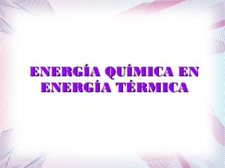 Este documento clasifica diferentes tipos de energía y dispositivos que los utilizan en cuatro categorías principales: energía química en térmica e incluye ejemplos como linternas y bolsas térmicas; energía química en cinética con máquinas de afeitar eléctricas y juguetes; energía eléctrica en térmica con tostadoras, planchas de pelo y aires acondicionados; y energía eléctrica en cinética con electrodomésticos como secadoras y batidoras. También