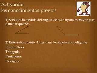 Este documento presenta una lección sobre transformaciones isométricas impartida por el profesor Heriberto Constanzo. La lección incluye ejercicios para identificar ángulos, lados de polígonos y transformaciones isométricas como traslaciones, reflexiones y rotaciones. El documento explica que durante una transformación isométrica se mantiene la forma y el tamaño de la figura.
