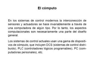 El documento trata sobre el control automático y la transformada de Laplace. Explica que la transformada de Laplace convierte ecuaciones diferenciales en ecuaciones algebraicas más fáciles de resolver y describe algunas propiedades como la linealidad y el desplazamiento en el tiempo y la frecuencia. También muestra cómo usar MATLAB para calcular transformadas de Laplace directas e inversas.