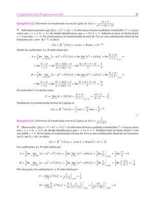 3) Se explican técnicas como fracciones parciales para calcular la transformada inversa de funciones racionales resultantes