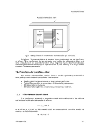 El documento describe los transformadores eléctricos. Los transformadores permiten modificar la potencia eléctrica de corriente alterna entre diferentes valores de tensión y corriente. Se usan ampliamente en sistemas de transmisión y distribución de energía eléctrica para elevar o reducir la tensión durante la transmisión y distribución. Básicamente, un transformador monofásico consiste en un núcleo de hierro con dos bobinados, el primario y el secundario.