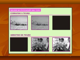 El documento habla sobre las técnicas de transición y elipsis que se usan en medios audiovisuales para resumir o expandir el tiempo. Estas incluyen la elipsis para omitir tiempo muerto, disolvencias para saltos en el tiempo, barridos para transiciones suaves, y flashbacks/flashforwards para mostrar escenas del pasado o futuro. También se usa la ralentización, congelado y aceleración para alterar la percepción del tiempo.
