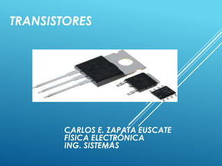Este documento describe diferentes tipos de transistores, incluyendo el transistor JFET, transistor MOSFET, fototransistor, transistor de contacto puntual y transistor de unión bipolar. Para cada tipo de transistor, se proporciona una breve descripción de sus características y una ficha técnica.