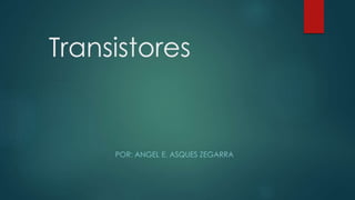 El documento describe la historia y funcionamiento del transistor. El transistor es un dispositivo semiconductor que se utiliza para amplificar o conmutar señales eléctricas. Fue inventado en 1947 y ha reemplazado a la válvula termoiónica en la mayoría de dispositivos electrónicos debido a que es más pequeño, consume menos energía y es más confiable. Existen diferentes tipos de transistores como el bipolar, de efecto de campo y fototransistor.