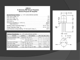 El documento describe diferentes tipos de transistores, incluyendo los transistores JFET, MOSFET, IGBT y de efecto de campo. Los transistores son dispositivos semiconductores amplificadores, osciladores, conmutadores o rectificadores que se encuentran en la mayoría de aparatos electrónicos y cumplen funciones como la amplificación o conmutación de señales electrónicas.