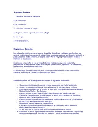 El documento habla sobre el transporte terrestre en tres oraciones:
