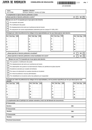 Elena Victoria Ortega Arasco solicita participar en el concurso de traslados de ámbito autonómico del personal docente para el curso 2011-2012. Solicita plazas en la provincia de Granada en las especialidades de Educación Primaria, Inglés y Francés. Proporciona su información personal de contacto y marca la casilla de que consiente en la consulta de sus datos a través de sistemas de verificación de identidad.