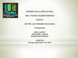 Este documento resume la historia del Tratado Esguerra-Bárcenas de 1928 entre Colombia y Nicaragua, que definió sus fronteras marítimas y territoriales. Incluye detalles sobre la posición geográfica de Colombia, el territorio y soberanía de las islas de San Andrés y Providencia, y el fallo de la Corte Internacional de Justicia de 2012 que modificó la frontera marítima entre los países.