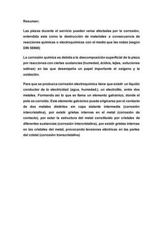 1) El documento habla sobre los tratamientos térmicos del acero, incluyendo procesos como el temple, recocido y revenido. 2) Explica que estos tratamientos térmicos modifican la estructura interna del acero para mejorar sus propiedades mecánicas. 3) También describe los diferentes tipos de medios de enfriamiento usados durante el temple, como el aire, aceite, agua y sales fundidas.