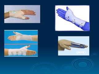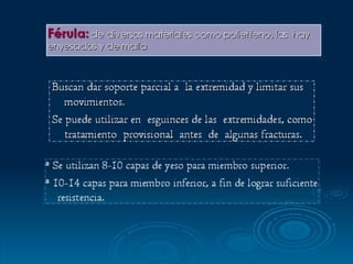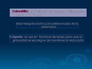 La inmovilización es la prevención del desplazamiento de huesos o articulaciones lesionadas mediante el uso de férulas, yesos u otros segmentos anatómicos. Los principales objetivos de la inmovilización son mantener las reducciones óseas para consolidación, permitir la reparación de tejidos blandos, y disminuir complicaciones y daño tisular de lesiones como esguinces, luxaciones y fracturas. El documento analiza los diferentes tipos de inmovilización para la columna vertebral, miembros superiores, claví