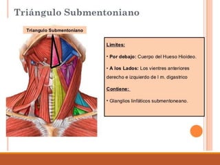 Este documento describe el trauma de cuello, incluyendo su historia, anatomía quirúrgica, clasificación, manifestaciones clínicas, evaluación, y tratamiento de lesiones penetrantes y cerradas. Se detalla la evaluación inicial siguiendo los protocolos ATLS, así como las indicaciones para cirugía o tratamiento médico dependiendo del tipo y gravedad de la lesión. El documento provee una guía completa para el manejo clínico del trauma de cuello.