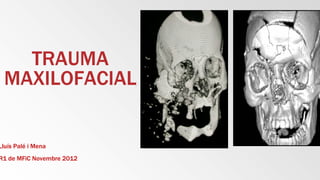 El documento resume las fracturas maxilofaciales más comunes, incluyendo fracturas nasales, mandibulares, orbitozigomáticas, orbitarias, maxilares y del hueso frontal. Describe los síntomas clínicos, pruebas de imagen y tratamiento inicial para cada tipo de fractura. El objetivo es priorizar el tratamiento de pacientes con trauma maxilofacial y proporcionar nociones básicas sobre la evaluación y manejo inicial de las fracturas faciales más frecuentes.