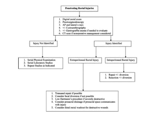 2) Las lesiones rectales pueden ser penetrantes, contusas o cerradas y se asocian con alta mortalidad.