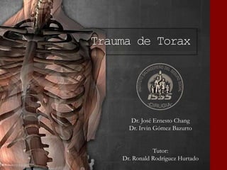 Este documento resume brevemente la historia de los traumas torácicos y su tratamiento. Explica la anatomía y fisiología de la cavidad torácica y los pulmones, y describe lesiones como el neumotórax, hemotórax y neumotórax a tensión. Resalta la importancia del diagnóstico y tratamiento tempranos de estas lesiones para prevenir complicaciones y muertes.
