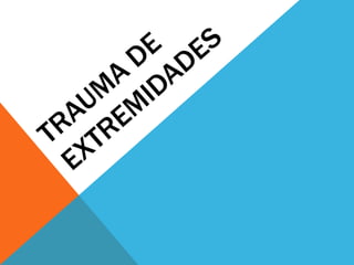 Este documento define y describe diferentes tipos de traumas, incluyendo esguinces, fracturas y luxaciones. Explica los síntomas y clasificaciones de cada lesión, así como tratamientos comunes como inmovilización, antiinflamatorios y atención médica. Se proporcionan detalles sobre grados de esguinces, tipos de fracturas según su ubicación y mecanismo, y articulaciones comúnmente luxadas.