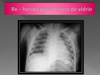 El paciente presenta soplo sistólico y bloqueo de rama derecha posiblemente debido a una lesión miocárdica sufrida 19 años atrás por trauma de arma blanca en el tórax. Actualmente manifiesta disnea y edema en miembros inferiores, sugiriendo insuficiencia cardiaca posiblemente relacionada a la lesión miocárdica previa.