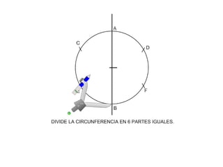 Este documento describe diferentes formas de simetría radial y proporciona instrucciones paso a paso para crear figuras geométricas con simetría radial utilizando puntos, líneas y curvas. Explica cómo construir triángulos equiláteros, hexágonos y polígonos estrellados interconectados que respetan la simetría radial tomando un punto central como referencia. También sugiere continuar agregando más formas y colorear manteniendo la simetría radial.