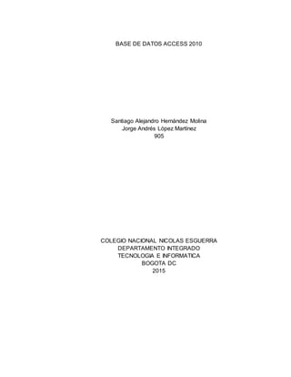 Este documento presenta un proyecto de implementación de una base de datos en Access 2010 para una empresa didáctica. Describe los objetivos de organizar la información de clientes y empleados en tablas, así como presentar informes a partir de las consultas realizadas. Explica conceptos básicos de bases de datos y su estructura en tablas, campos y registros.