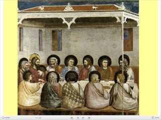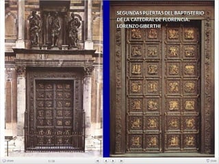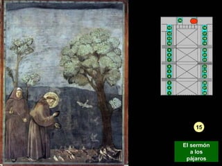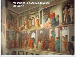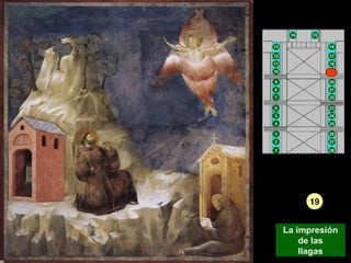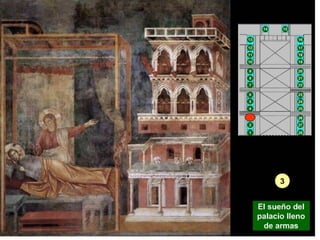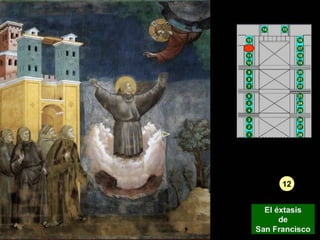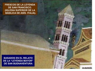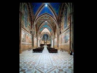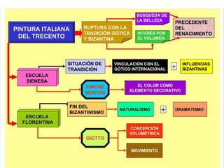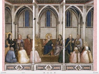 Giotto nació cerca de Florencia y se le atribuyen dos series de frescos en la Basílica de San Francisco de Asís. Su arte fue innovador y marcó la transición entre el arte bizantino y el Renacimiento, adoptando la perspectiva y volumen de la escultura.